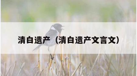 出自:《梁书》 徐勉传 《清白遗产》原文:勉虽居显位,不管产业,家无蓄积,俸禄分赡亲族之穷乏者。门人故旧从容致言,勉乃答曰:“人遗子孙以财,我遗之以清白。子孙才也,则自致辎;如其不才,终为他有。