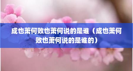 “成也萧何”是指韩信成为大将军是萧何推荐的;“败也萧何”是指韩信被杀是萧何出的计策。不论是成功还是败亡都是由于同一个人。人物生平:秦末大乱之际投奔项梁、项羽,未得重用。